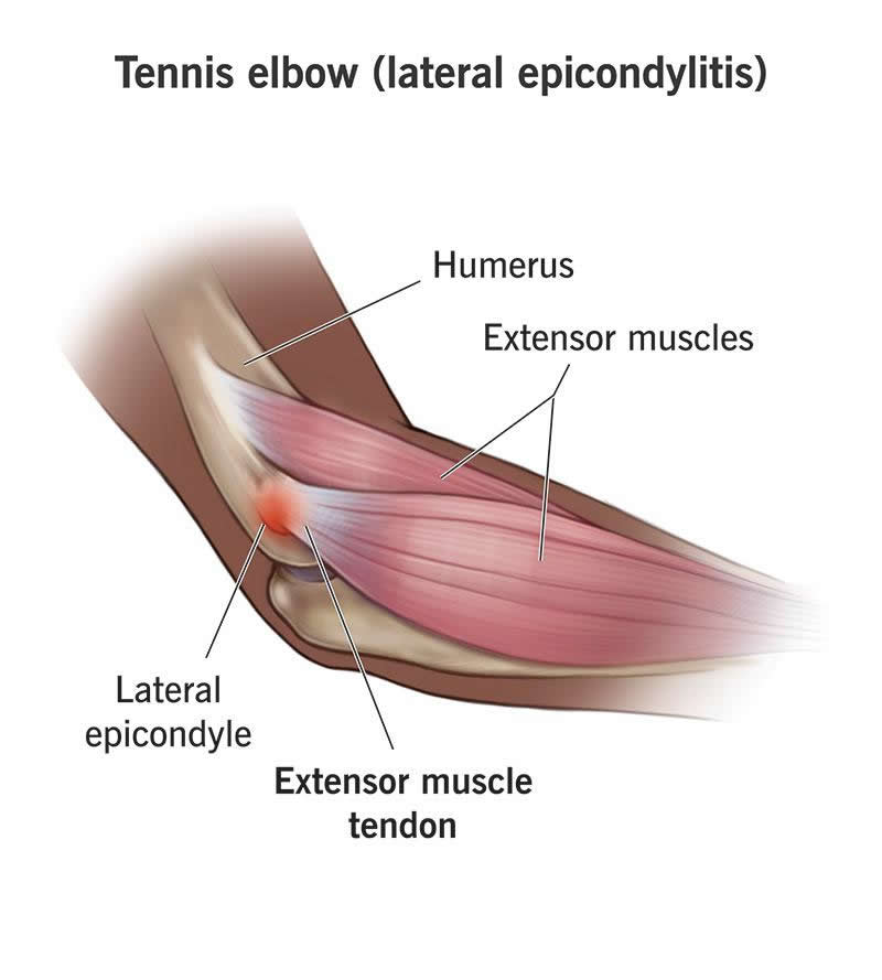 Tennis elbow (lateral epicondylitis) is an overuse injury that affects a tendon in your elbow. It happens when you do a repetitive motion like twisting or swinging your lower arm a lot. Most people get better with a few months of nonsurgical treatment and rest.