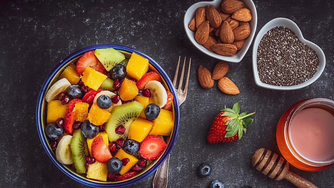 Remember to eat regularly throughout the day, choosing foods from the main food groups: Fruits, vegetables, protein, whole grains, healthy fats, and low-fat dairy.