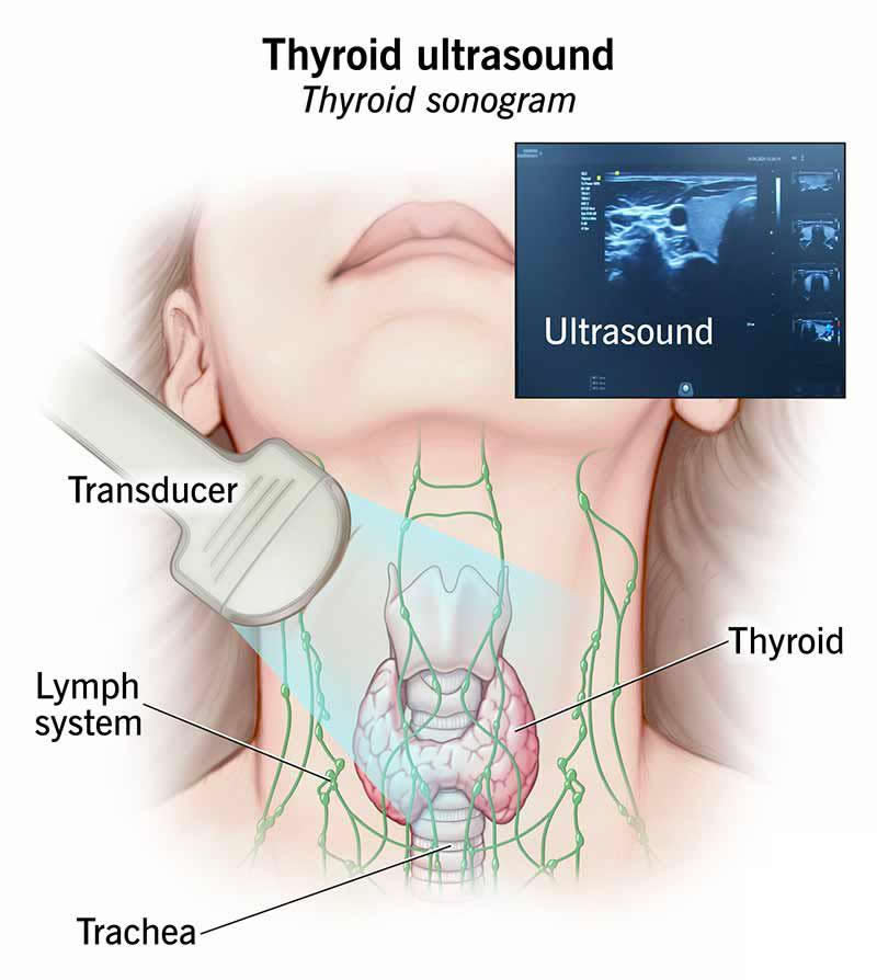A thyroid ultrasound is a painless imaging test that lets your provider look at your thyroid and the tissue around it in your neck. Healthcare providers sometimes call a thyroid ultrasound a sonogram or echogram.