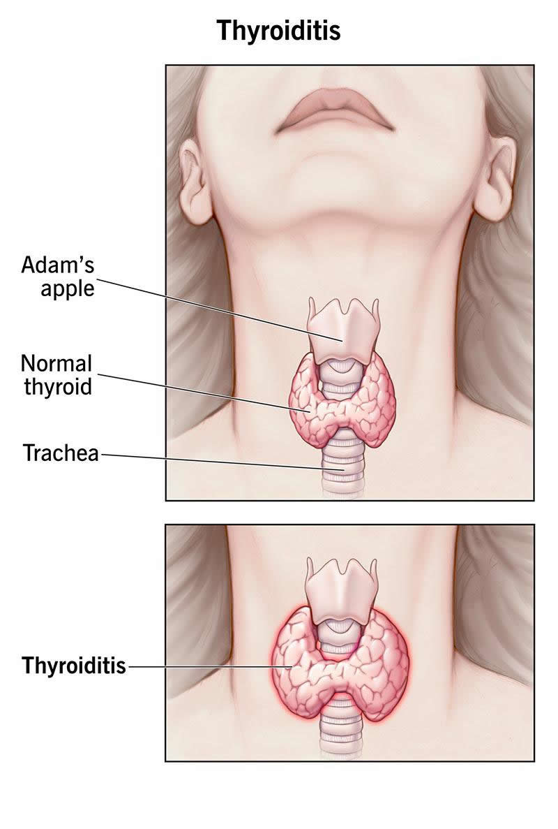 Thyroiditis represents a group of conditions that cause inflammation of your thyroid gland. Hashimoto's thyroiditis is the most common type. Some cases of thyroiditis are temporary and others cause permanent hypothyroidism (underactive thyroid). It’s treatable.