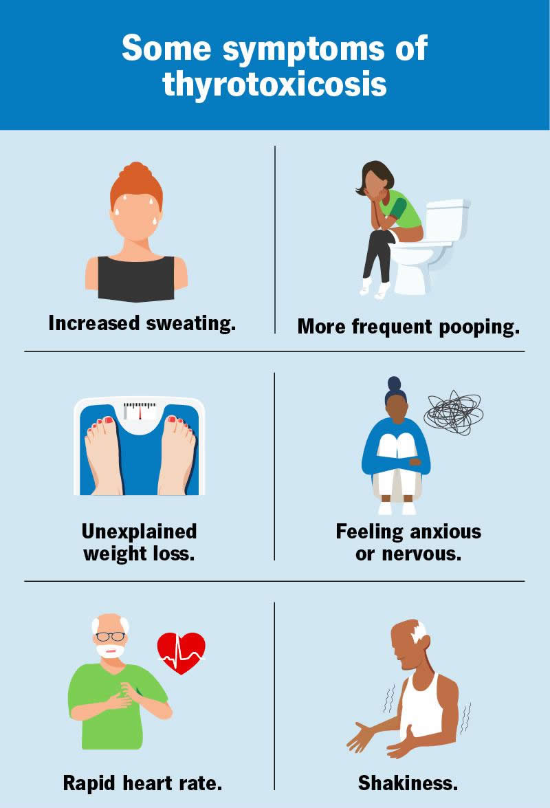 If you’re experiencing symptoms of thyrotoxicosis, it’s important to see your healthcare provider so they can figure out the cause and recommend proper treatment.