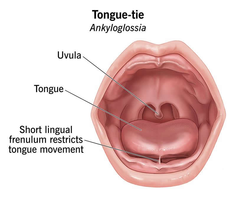 Tongue-tie is when a baby’s tongue can’t move as well as it should because a fold of tissue connects the bottom of their tongue to the floor of their mouth. This fold of tissue, called the lingual frenulum, is present in all children and usually harmless. But sometimes, a lingual frenulum that’s too tight or short can restrict the movement and function of a baby’s tongue. When this happens, healthcare providers diagnose a baby with ankyloglossia, more commonly known as tongue-tie.