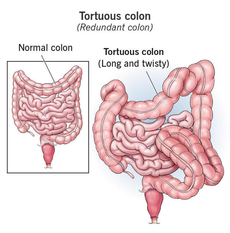 A tortuous colon (redundant colon) is extra-long, with more loops than usual. It may be longer in one segment, or throughout. It may not be significant, but sometimes it’s related to constipation and a slow intestinal transit time. Your healthcare provider will mention it if they notice it during a colonoscopy.