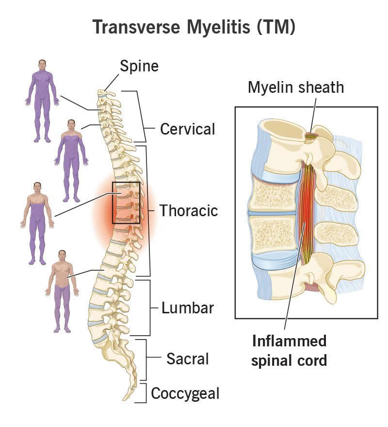 In general, transverse myelitis (TM) is caused by inflammation of your spinal cord.