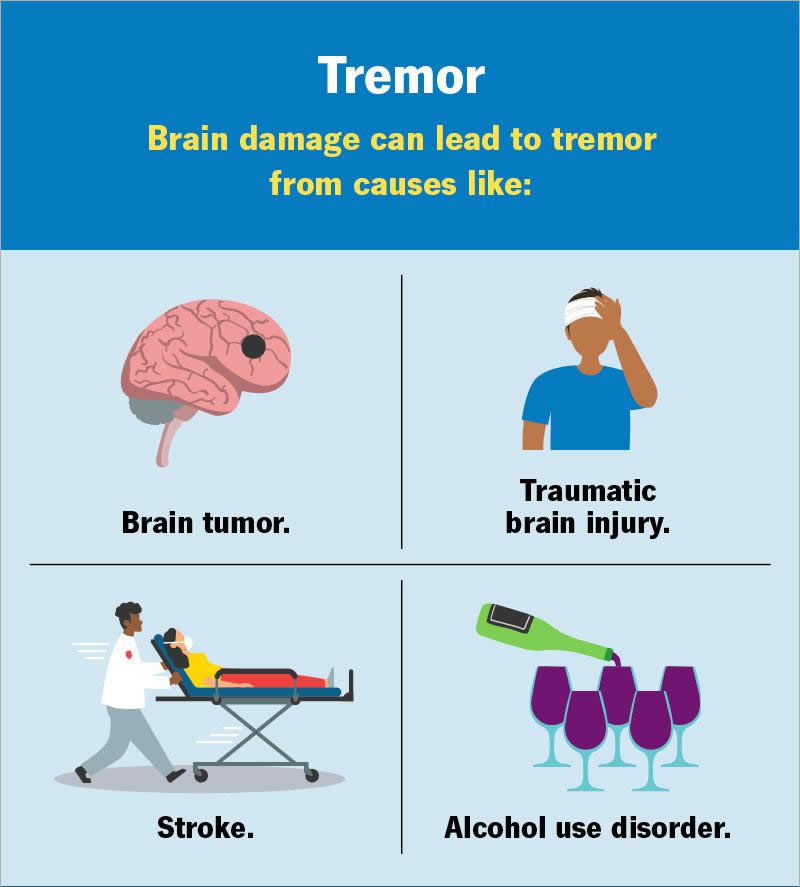 Nobody likes to feel out of control of their body, so developing tremor can be concerning. There’s no way to know what’s causing tremor without seeing a healthcare provider, as there are several possible underlying causes. A provider can recommend tests to find the cause and then offer a tailored treatment plan. Tremor is — by definition — a movement that’s out of your control. But there are actions you can take to manage the underlying condition and take back some control.