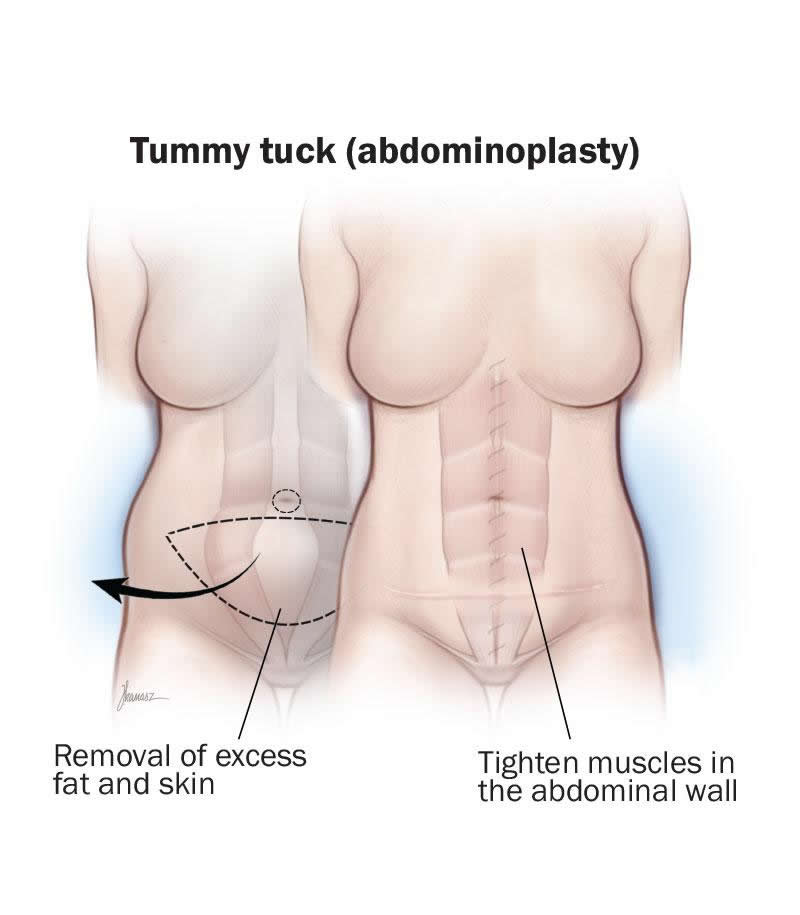A tummy tuck (abdominoplasty) is a procedure to remove excess skin and fat from your abdomen. It smooths and flattens your stomach. It also tightens your muscles. You may choose this surgery after having children or losing weight. If you’re considering plastic surgery, make sure you’re making the decision for yourself rather than someone else.