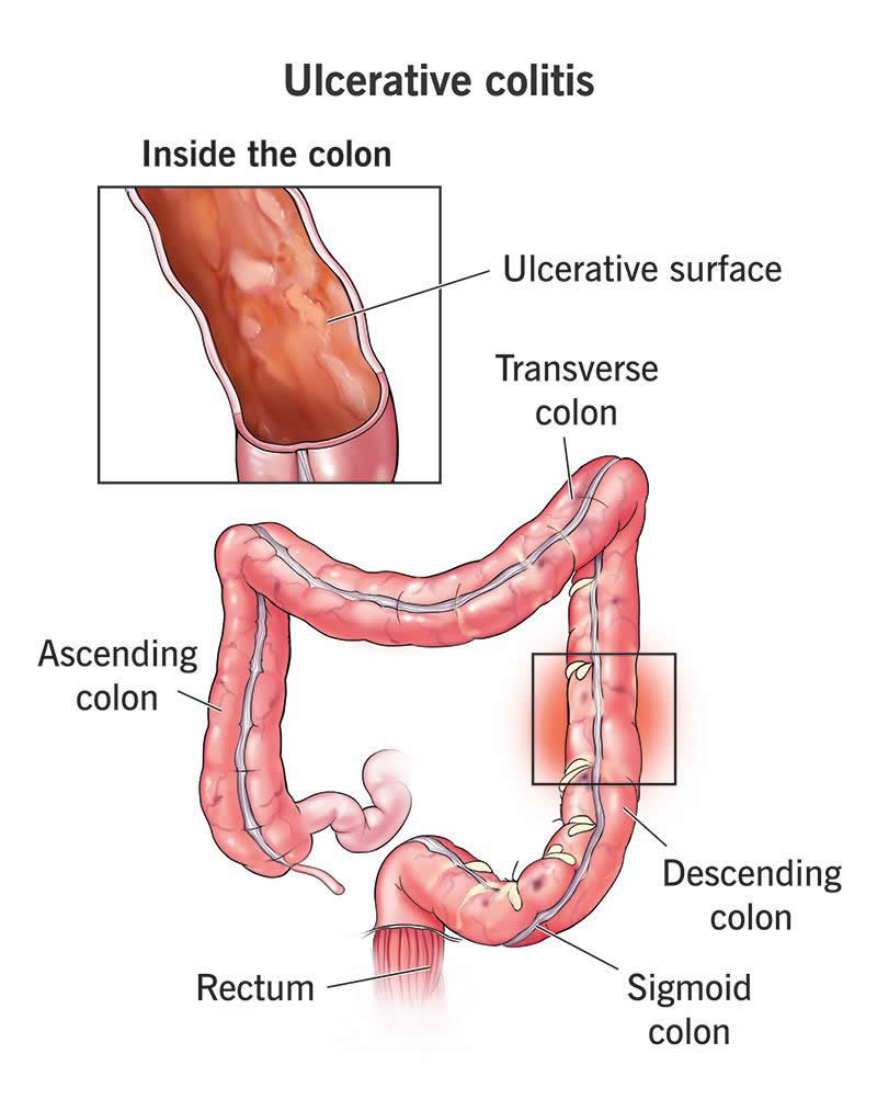 Healthcare providers classify UC based on where the inflammation is in your colon. The inflammation usually starts in your rectum, which is close to your anus (butthole). The inflammation can spread and affect all or part of your colon. Types include: