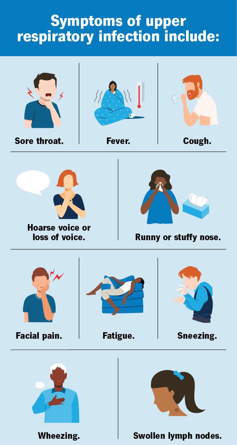 A runny nose, sore throat, headache and other cold-like symptoms might come to mind when you think of an upper respiratory infection. And it’s true — common colds and other viruses are usually to blame for URIs. But some URIs, like strep throat or some cases of sinusitis, are bacterial infections. Still others, like the viruses responsible for the flu, COVID-19 and RSV, can cause both upper and lower respiratory infections.