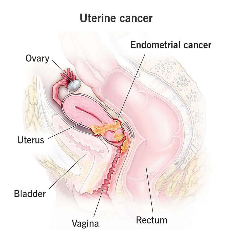 Uterine cancer includes endometrial cancer and uterine sarcoma. It’s the most common cancer affecting women's reproductive systems. Often, healthcare providers use the term endometrial cancer to describe uterine cancer because it’s the most common. Uterine cancer symptoms include vaginal bleeding between periods or after menopause. If healthcare providers catch uterine cancer before it spreads, surgery can cure it. If you experience any signs of uterine cancer, contact your healthcare provider.