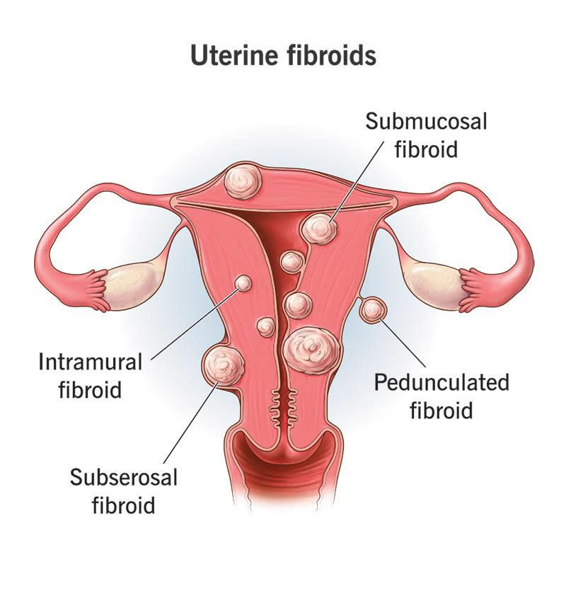 There are different types of uterine fibroids depending on where they’re located and how they attach. Specific types of uterine fibroids include: