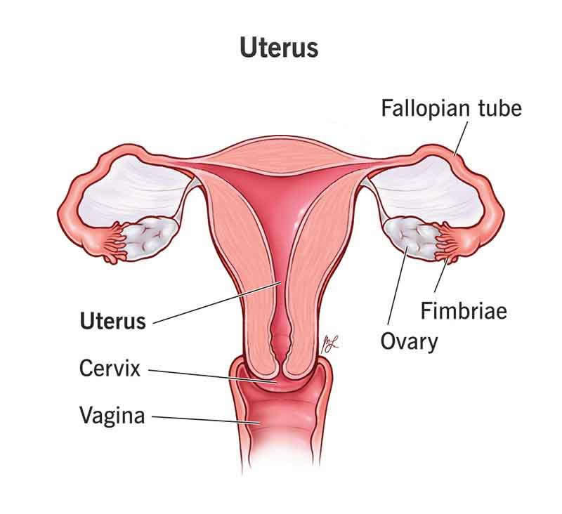 Your uterus is a pear-shaped organ in the reproductive system of females. It’s where a fertilized egg implants during pregnancy and where your baby develops until birth. It’s also responsible for your menstrual cycle.