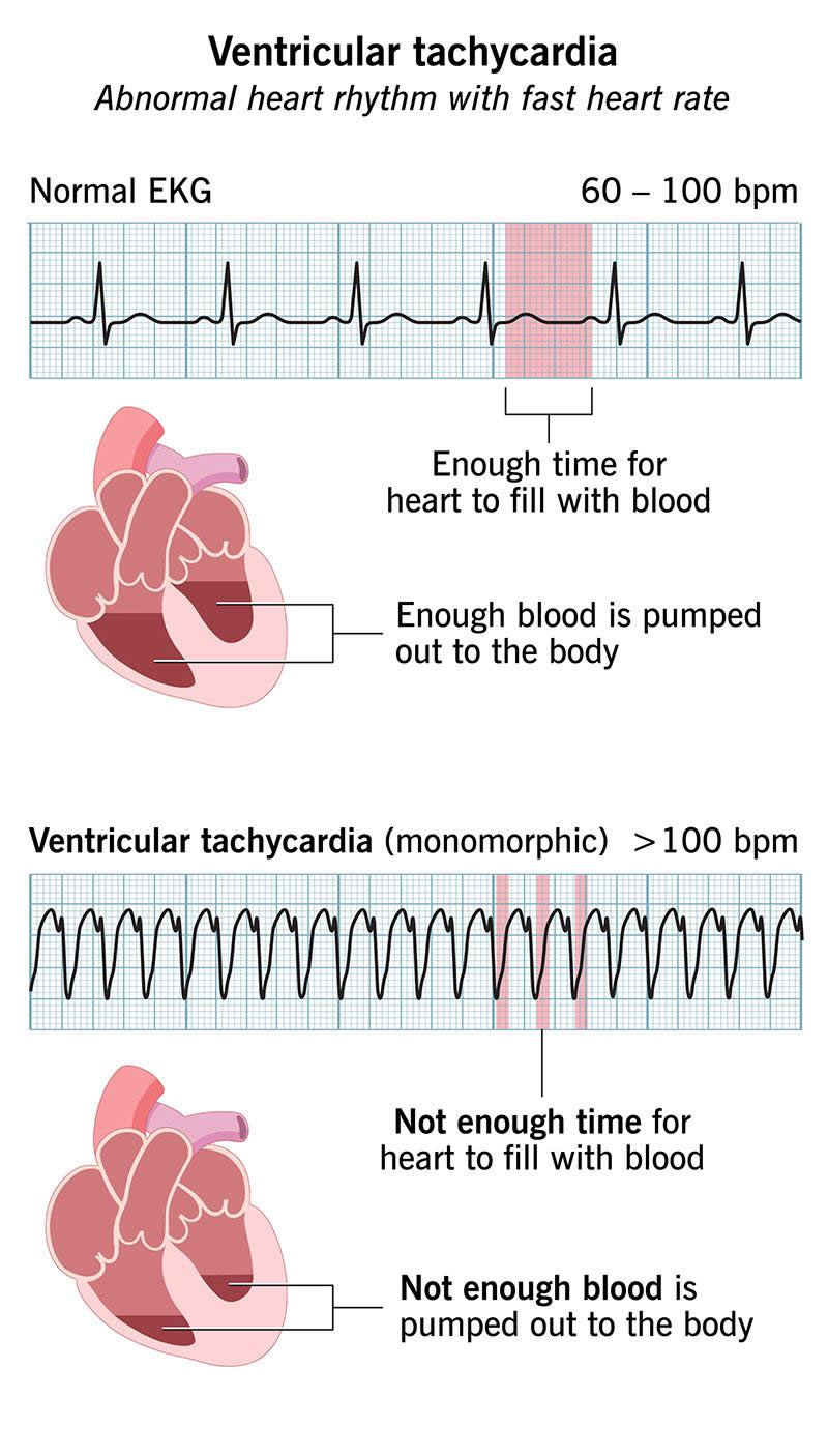 Ventricular tachycardia is a fast, abnormal heart rhythm (arrhythmia) that comes from atypical electrical signals in your heart’s lower chambers. These keep normal heartbeat signals from getting through and make your heart beat so fast that it can’t pump enough blood to your body. Treatments include managing the cause and, sometimes, procedures.