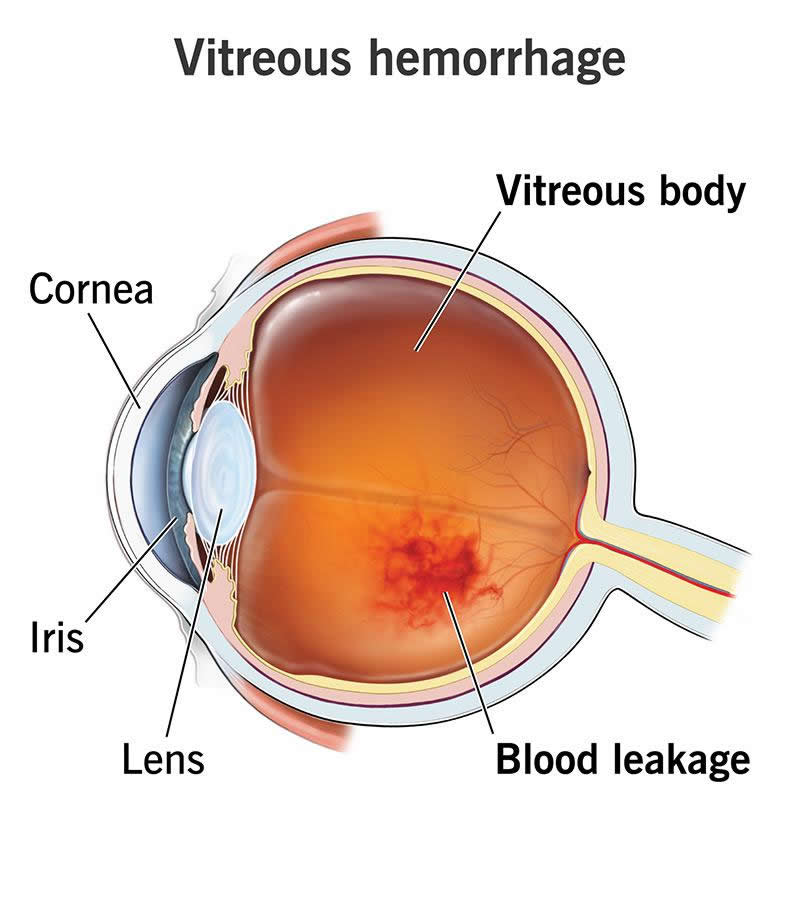 Diseases that weaken blood vessels in your eye or disrupt how they should work can lead to vitreous hemorrhage. Examples include, but aren’t limited to, the following: