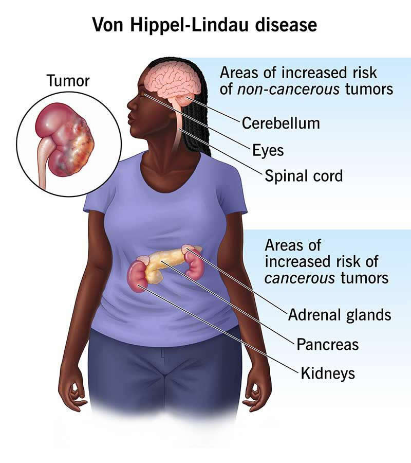 People with von Hippel-Lindau disease (VHL) have an increased risk of having cancerous and noncancerous tumors that can develop throughout their bodies. Healthcare providers may call this disorder von Hippel-Lindau syndrome. VHL is a rare genetic disorder that happens if you inherit a specific genetic mutation. Treatment is surgery to remove tumors.