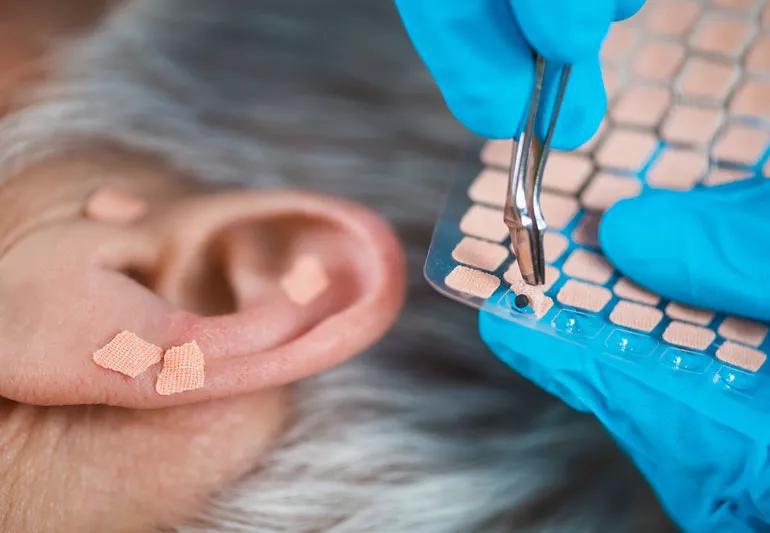 “The cranial nerves, accessed through the ears, stimulate the nervous system to suppress the urge for cigarettes,” explains Starkey. “We’re trying not only to suppress cravings, but also to engage the relaxation response. We’re really manipulating the body using needles and targeted pressure to help support people as they work through withdrawal symptoms.