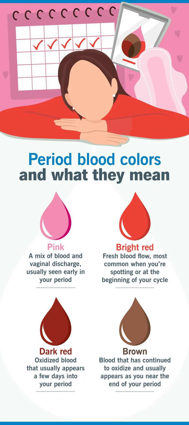 It’s normal for your period blood to come in shades of pink, red and brown.