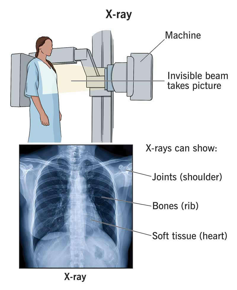 An X-ray is a type of medical imaging that uses radiation to take pictures of the inside of your body. We often think of X-rays as something providers use to diagnose broken bones or look at your teeth. But X-ray images can also help providers diagnose a wide range of injuries, disorders and diseases.