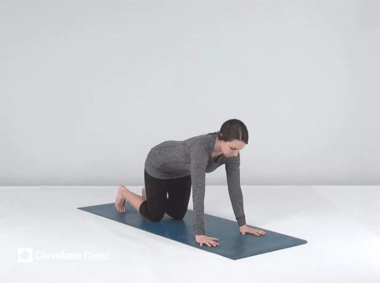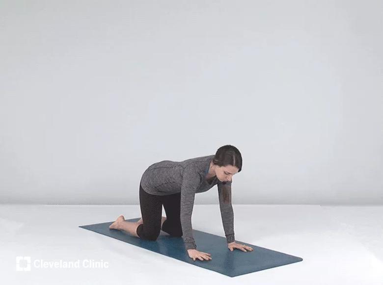 - Start from a hands and knees position. Pull your belly muscles inward and keep your lower back flat.