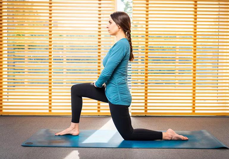 A beginner’s pose, this stretches your hip flexor and quadricep muscles.