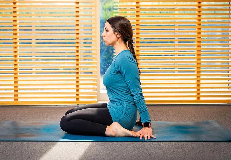 - Rest the backs of your hands on your thighs and hold this position.