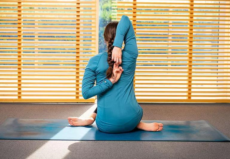 This intermediate pose stretches your lower back, gluteal and outer hip muscles.